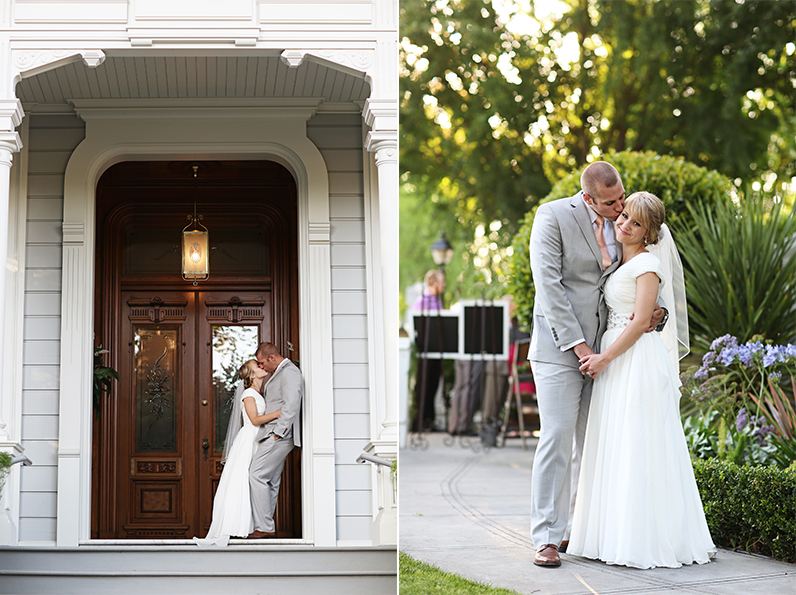Their reception was held in Paige’s hometown of Modesto at the McHenry Mansion. It was such a stunning backdrop for their reception. Tables were set underneath large, leafy trees, kids played in the grass, jazz music floated through the air. The peach and cream colors of the wedding were classic & the wedding had such a timeless feel to it. We were lucky to have a few minutes before the reception started to take some photographs as the sun set around the mansion. Paige & Sam greeted their guests, danced, cut their cake & left the reception with a ribbon sendoff. Their entire day was nothing short of absolutely perfect. For a couple who is the happiest couple in the world, it only seems fitting that they are honeymooning in the happiest place in the world-Disneyland!!!