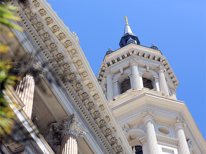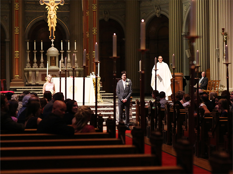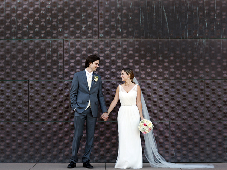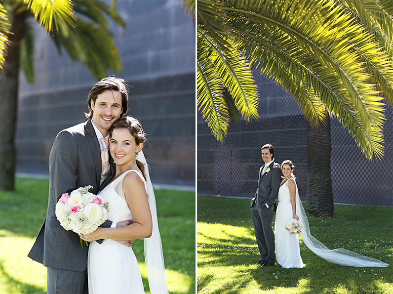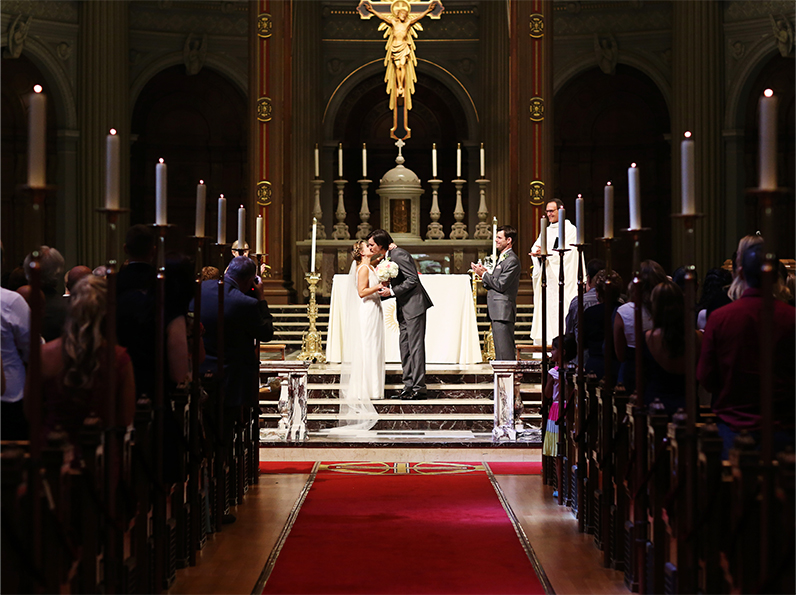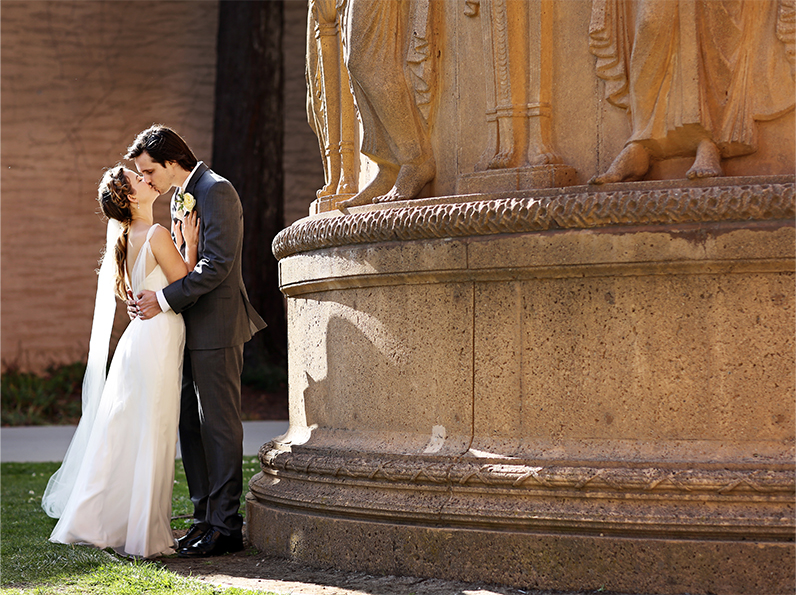 Meghan & Jesse were married in the gorgeous & iconic St.Ignatius church in San Francisco. The church is filled with so many beautiful sculptures, columns and at every corner there is something beautiful. It was a perfect setting for their ceremony. After they said “I do,” they went to all of their favorite San Francisco landmarks for photos-Golden Gate Park, Chrissy Beach & the Palace of Fine Arts for photos. It was great to be able to have so many backdrops for photos! They soon joined their friends for their reception at the San Francisco Film Centre-a vibrant and fun place for their party! Friends enjoyed drinks, amazing food, lawn games & a live band. It was certainly a beautiful night to remember!